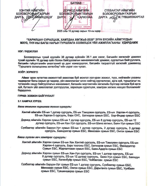 Дорнод аймгийн Баян-Уул, Баяндун сумдад Хэнтий аймгаас, Чойбалсан суманд Сүхбаатар аймгаас монгол хэл, уран зохиолын багш нар, Хэрлэн сумын 1,5 дугаар сургуульд Сүхбаатар аймгаас 8, Хан-Уул сургууль дээр Хэнтий аймгийн түүх, нийгмийн ухааны багш нар тус тус туршлагаа солилцож ажилласан.