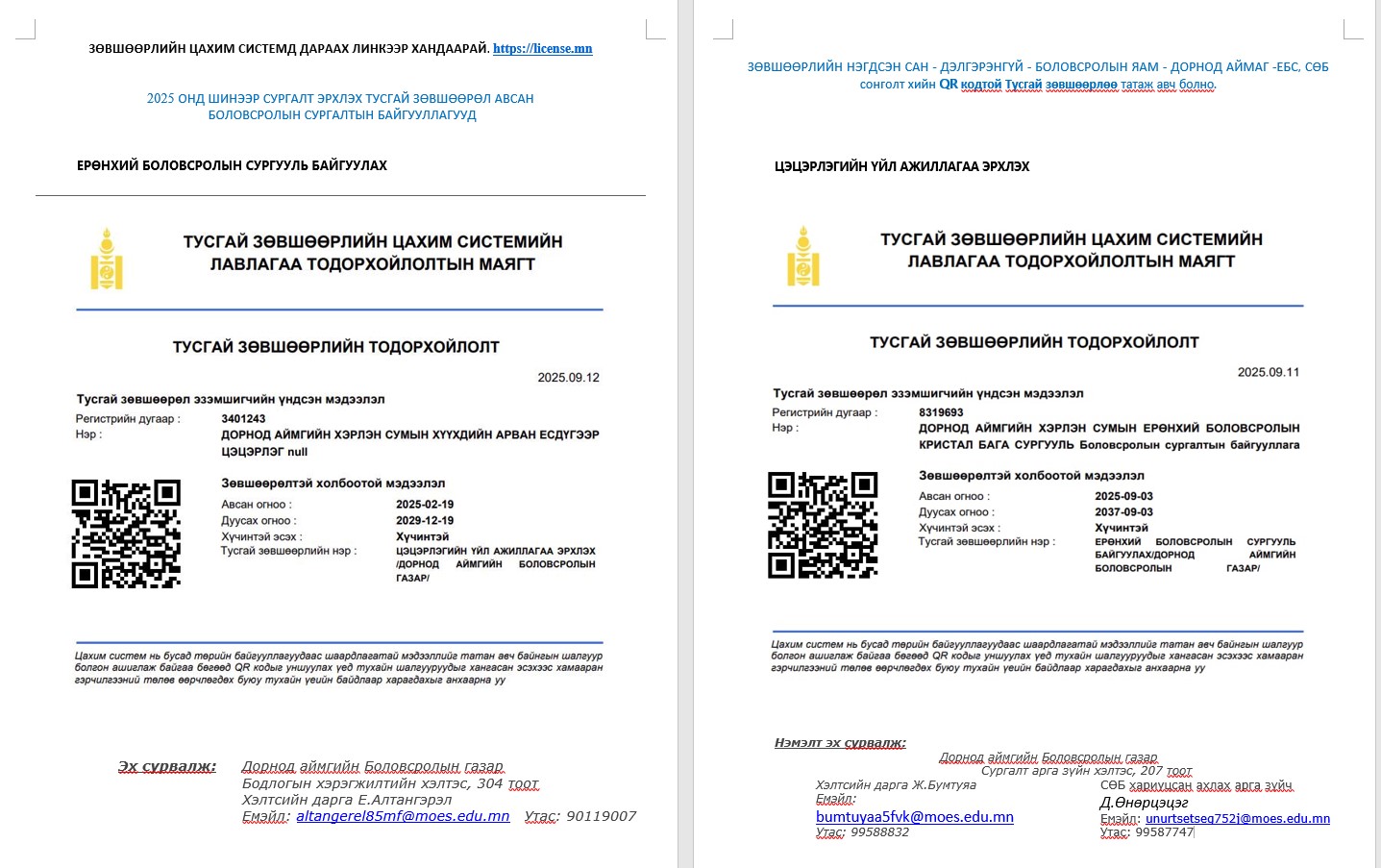 ТУСГАЙ ЗӨВШӨӨРӨЛ ОЛГОСОН БАЙГУУЛЛАГА-2025 ОНЫ ЭЦСИЙН БАЙДЛААР